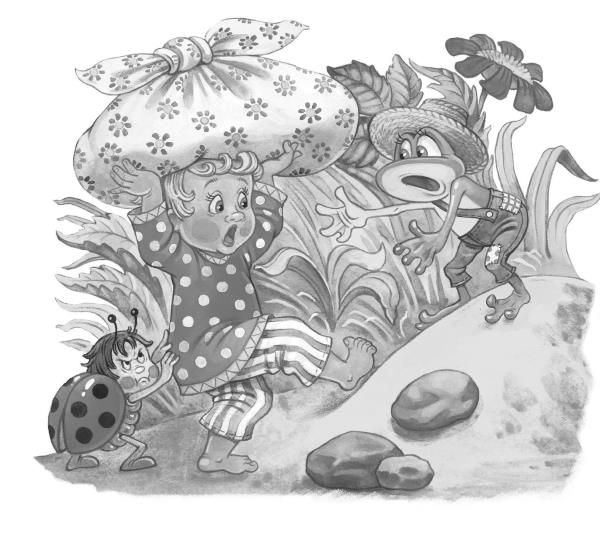 Старуха завязала блины в узелок и дала сыночку. Липунюшка взял узел и побежал в поле.