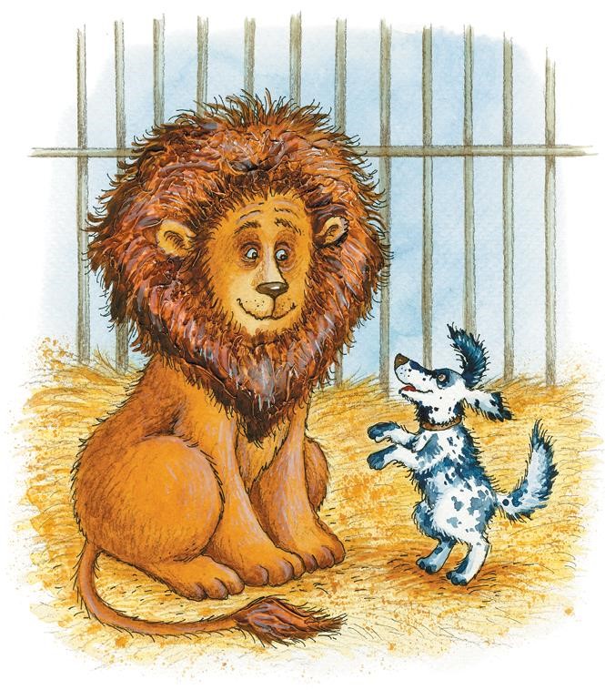 С тех пор собачка жила в одной клетке со львом, лев не трогал её, ел корм, спал с ней вместе, а иногда играл с ней.