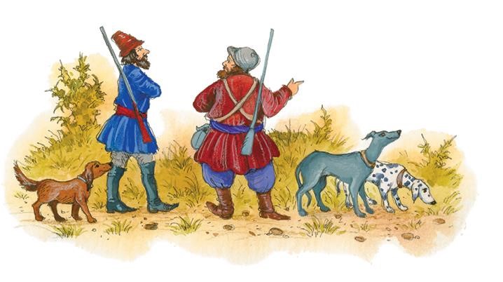 Ветер шевелил солому по дороге, а котёнок играл с соломой, и дети радовались на него. Потом они нашли подле дороги щавель, пошли собирать его и забыли про котёнка. Вдруг они услыхали, что кто-то громко кричит: «Назад, назад!» – и увидали, что скачет охотник, а впереди его две собаки увидали котёнка и хотят схватить его. А котёнок, глупый, вместо того чтобы бежать, присел к земле, сгорбил спину и смотрит на собак.