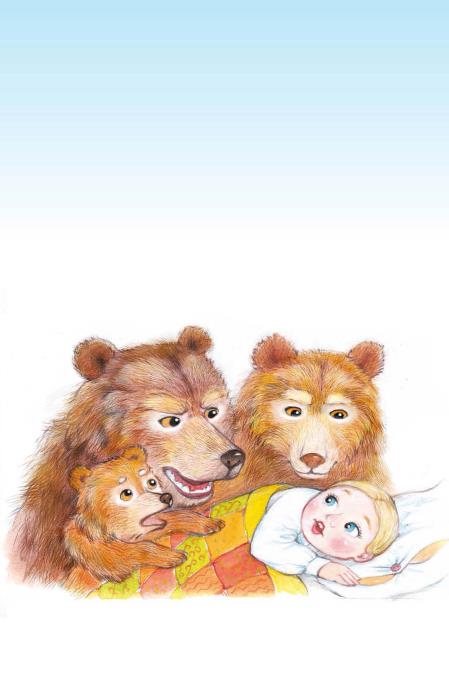 Он хотел её укусить. Девочка открыла глаза, увидела медведей и бросилась к окну. Оно было открыто, она выскочила в окно и убежала. И медведи не догнали её.