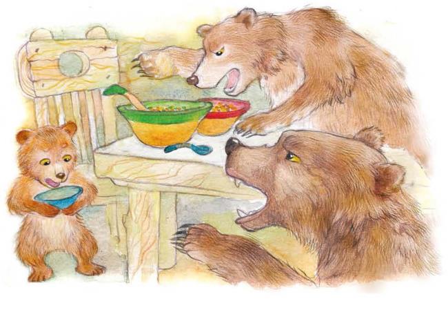 А медведи пришли домой голодные и захотели обедать. Большой медведь взял чашку, взглянул и заревел страшным голосом: