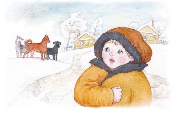 Школа была за селом у церкви. Когда Филипп шёл по своей слободе, собаки не трогали его, они его знали. Но когда он вышел к чужим дворам, выскочила Жучка, залаяла, а за Жучкой большая собака Волчок. Филипок бросился бежать, собаки за ним. Филипок стал кричать, споткнулся и упал.