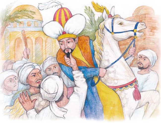 Был у персидского царя правдивый визирь Абдул. Поехал он раз к царю через город. А в городе собрался народ бунтовать. Как только увидали визиря, обступили его, остановили лошадь и стали грозить ему, что они его убьют, если он по-ихнему не сделает. Один человек так осмелился, что взял его за бороду и подёргал ему бороду. Когда они отпустили визиря, он приехал к царю и упросил его помочь народу и не наказывать за то, что они его так обидели.