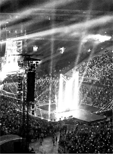 ARMY со всего мира наслаждаются концертом BTS «Love Yourself: Speak Yourself»[3] и размахивают ARMY-бомбочками. 1 июня 2019 год. Англия, Лондон, стадион Уэмбли. Автор фото: Вон Джиён