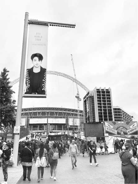 Главный вход стадиона Уэмбли во время мирового турне BTS «Love Yourself: Speak Yourself». Автор фото: Вон Джиён
