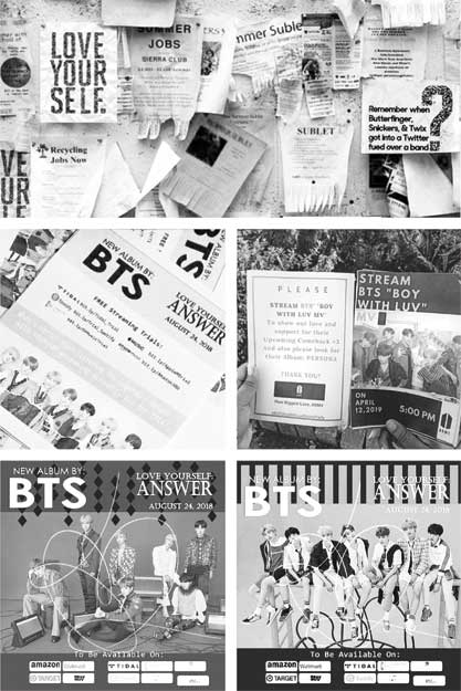 «Партизанское» продвижение в повседневной жизни ARMY. Фанаты прикрепляют на школьные доски объявлений листовки с рекламой альбомов BTS или приклеивают стикеры на двери туалета