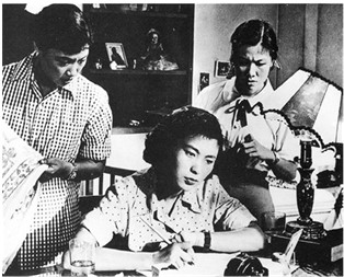 После образования Китайской Народной Республики китайские кинематографисты наряду с воспеванием подвигов революционеров приступили к созданию фильмов, повествующих о глобальных переменах, произошедших в обществе и во взглядах людей. Наиболее популярными темами фильмов того времени стали социальное положение женщины, улучшение жизни народа, индустриализация страны и перемены в деревне. Ярким примером можно назвать фильм «Вставайте, сестры» (1951) – об изменениях в судьбе женщин, занимавшихся в старом обществе проституцией. В картине «Девушка из Шанхая» (1958) был создан блестящий образ главной героини – молодого инженера, которая на строительной площадке проявила высокие деловые и личностные качества, чем, естественно, завоевала уважение мужчин. А в образе простой деревенской труженицы в фильме «Ли Шуаншуан» (1962) нашли свое воплощение стремления китайских сельских женщин вырваться из оков предрассудков и включиться в общественную жизнь.