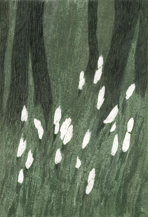 Вдруг за пеленой дождя кто-то выскочил, исчез и тут же появился снова. Из зарослей виднелись белые меховые комочки, будто парившие в воздухе. Один, два, три… трое, нет, четверо чужаков?