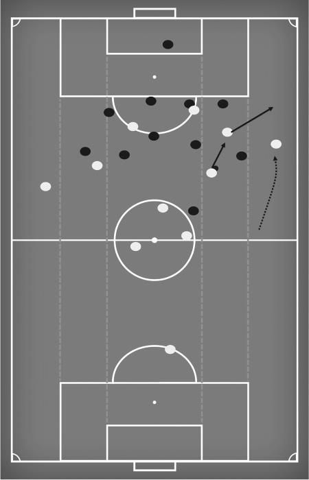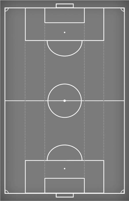 Это буквальный термин, который я считаю ключевым для понимания тактики. Впервые он получил свою популярность в немецком языке, откуда и пришел к нам. Он определяет конкретное пространство на поле. Вы можете посмотреть пример на рис. 1. Футбольное поле разделено на пять вертикальных секций. Два широких пространства по бокам и центральная часть говорят сами за себя. Если мы пронумеруем эти секции от 1 до 5 слева направо, то 2 и 4 – полуфланги. С точки зрения тактики они являются ключевыми, так как если вы владеете мячом в этих зонах, то заставляете обороняющихся игроков покидать свои позиции.