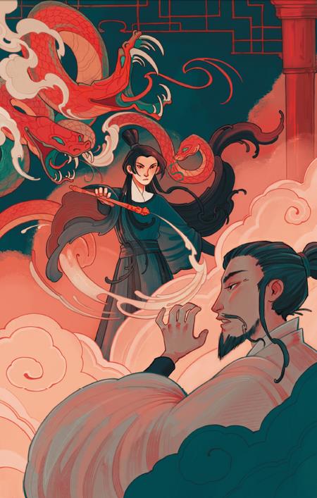 Ян Шанюан собирался атаковать и даже сложил пальцы, призывая меч, но в следующее мгновение и он, и предсказатель отскочили от Лин Ху. Вокруг юноши закрутился небольшой вихрь, который вскоре обернулся большим и необычным кнутом. От середины рукоятки он разделялся на три змеиные головы: первая была больше бычьей, вторая – чуть меньше человеческой, третья по размеру совпадала с головой кобры. Взгляд Лин Ху изменился – теперь он смотрел на предсказателя с ледяной ненавистью, и взгляд этот ничего хорошего не предвещал.