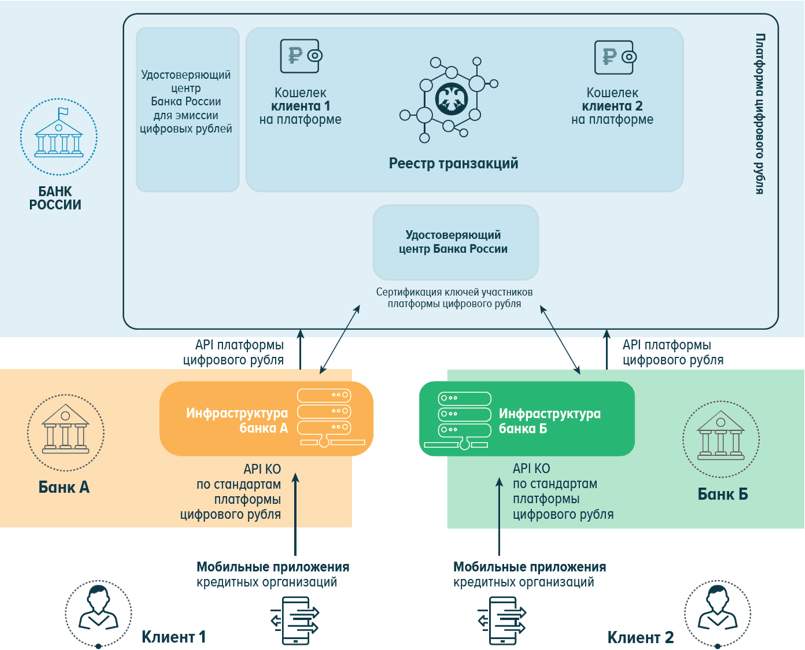 • API платформы цифрового рубля – программный интерфейс, через который кредитные организации будут подключаться к платформе цифрового рубля;