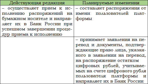Изменения в Положение о платформе цифрового рубля в части функций участника платформы цифрового рубля