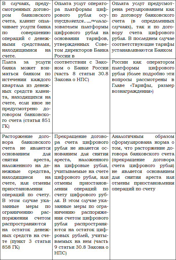 Сравнение отдельных положений договора банковского счета и договора счета цифрового рубля (принципиальные отличия)