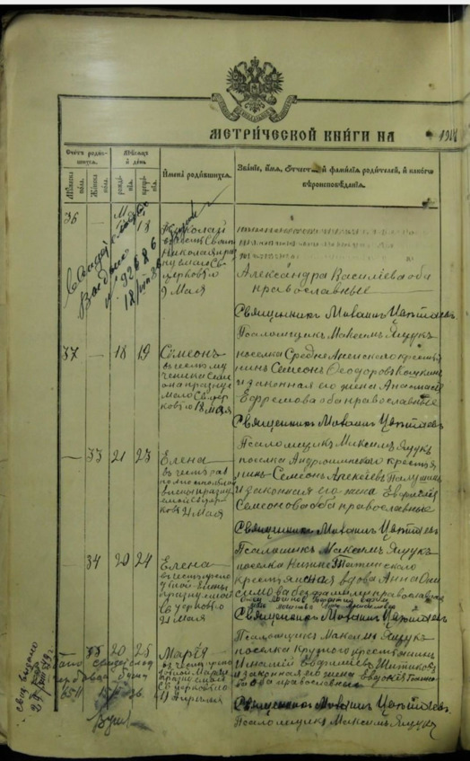 В свидетельстве о рождении Логиновой Елены Терентьевны (бабушкиной сестры которая прожила до февраля 2004 года), также указывается матерью Анна Анисимовна, а отцом Терентий Ефимович, поскольку оно сделано на основании этой записи в Метрической книге, но читая это, обращается внимание на запись об отсутствии фамилии и о том, что Анна Иосифовна – вдова.