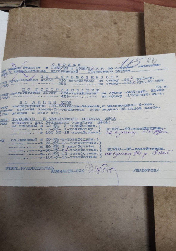 Сводка помощи бедноте в 1925/26/27 г.г. со стороны советско-… и хозяйственных организаций Гаринского района
