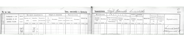 Максимъ Парфёновъ. Расчетная книга по ссудам, выданным переселенцам на домообзаводство, путевое пособие и прочее27