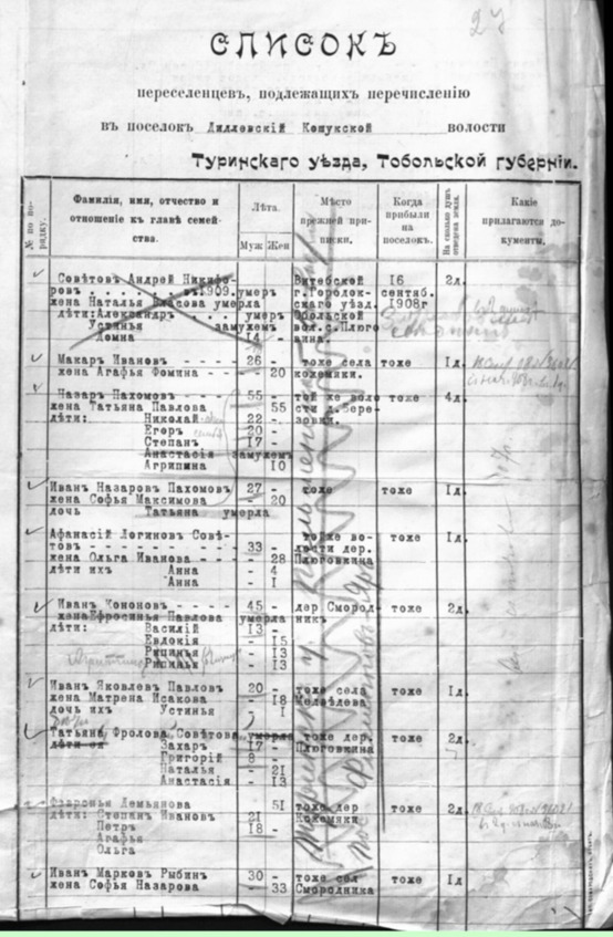 Изучая в Тобольской государственном архиве документы о переселенцах, я наконец-то нашла упоминания о своих родственниках.