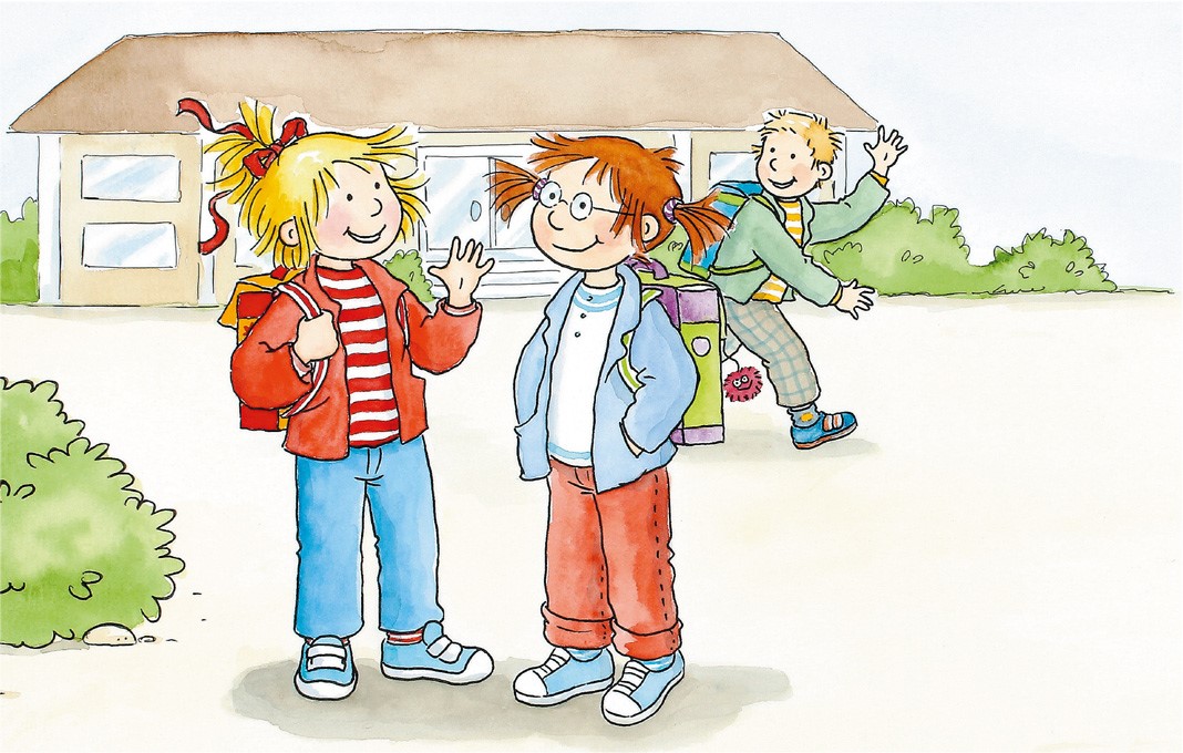 Сегодня Конни и Анне приходится одним возвращаться из школы. Обычно они ходят вместе со своим другом Симоном. Но сегодня ему нездоровилось, и мама забрала Симона прямо с урока математики.