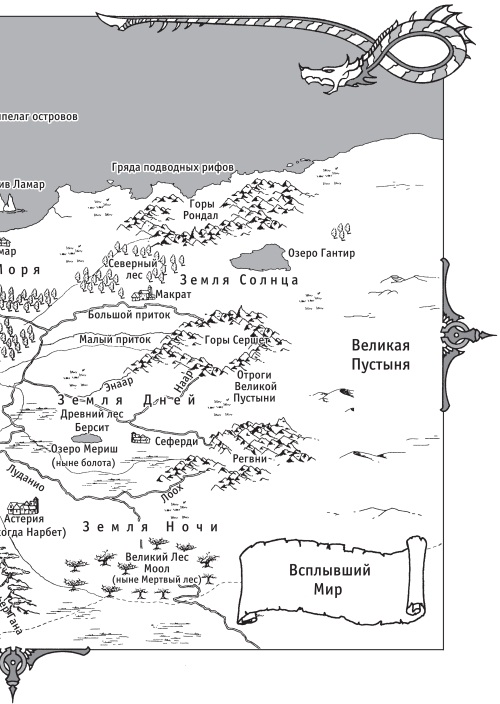 Рейс – старая злодейка. Глядя с ненавистью на Ниал, она поведала, что Ниал была посвящена божеству со странным именем Шеврар и что она – единственная, владеющая ключом, необходимым для спасения мира от Тиранно. Ниал должна найти восемь камней, спрятанных в каждой из восьми Земель. Когда она соберет камни, то ей надо будет сложить их вместе и с помощью талисмана вызвать некую волшебную силу, которая сможет спасти Всплывший Мир от колдовства. Мы узнали еще и о том, что именно Рейс вызвала кошмары, преследующие Ниал, чтобы та нашла в себе мужество выполнить свою задачу. Я увел Ниал из этого места и убедил ее не выполнять требований Рейс.