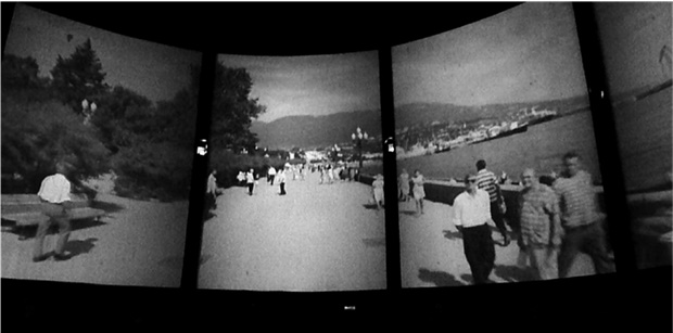 Илл. 5. Прогулка по советской набережной. Кадр из кругорамного фильма «В дорогу, в дорогу», 1969