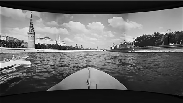 Илл. 6. По волнам Москвы-реки. Кадр из фильма «Русские приключения синерамы», 1966 (для выпуска в американской синераме в этом фильме объединили шесть картин, снятых для советской кинопанорамы)