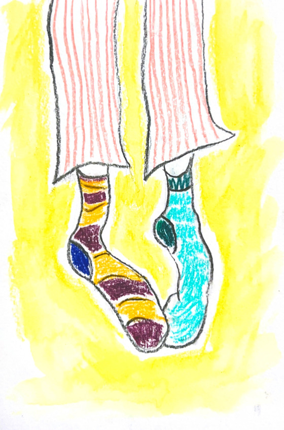 – У меня странная проблема – я каждый раз теряю один носок из пары после стирки. Я перепробовала все: считала их до и после стирки, складывала одиночные носки в секцию шкафчика с носками обратно, чтобы потом искать недостающий, но ничего не помогало. Носки только копились. Мой муж вообще не любит скопление носков-одиночек. Он сразу их выбрасывает. Говорит, что потерянный носок перед выходом на работу – это самая настоящая подстава со стороны негодяев-носков! Но мне так жалко эти носочки! Я завела специальных секретный ящик для носков-одиночек, чтобы им не было грустно. Розовый с желтым, зеленый с синим, розовый с фиолетовым. Даже черные мужские носки там соединяются с женскими подследниками. И никаких правил в комнате «свободных художников»! Могу надеть синий носок с красным, а зеленый с желтым. Смотри, вот еще записи в сообщениях: «Среда. Сижу в метро. Никто даже не подозревает, что на мне один голубой, а другой желтый носок.» Через час еще сообщение: «Так здорово иметь свой маленький секрет!». Такая, знаешь, беспечная шалость..