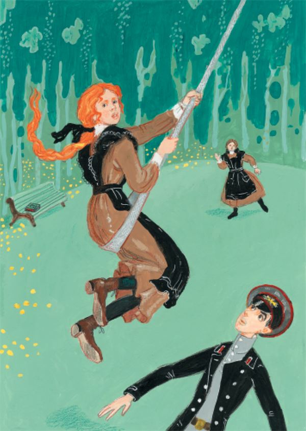 И побежали. Ева хорошо бегает на гигантах. У Евы крепкие ноги, а тело легкое. А сейчас она бегает особенно хорошо, потому что на нее смотрит король треф. Ева разбежится, с силой оттолкнется от земли, взрывая пыль, и взлетит высоко – выше березок.