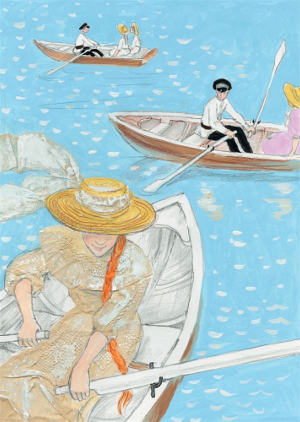 Старый лодочник, Евин приятель, научил Еву и Нину грести и править рулем.