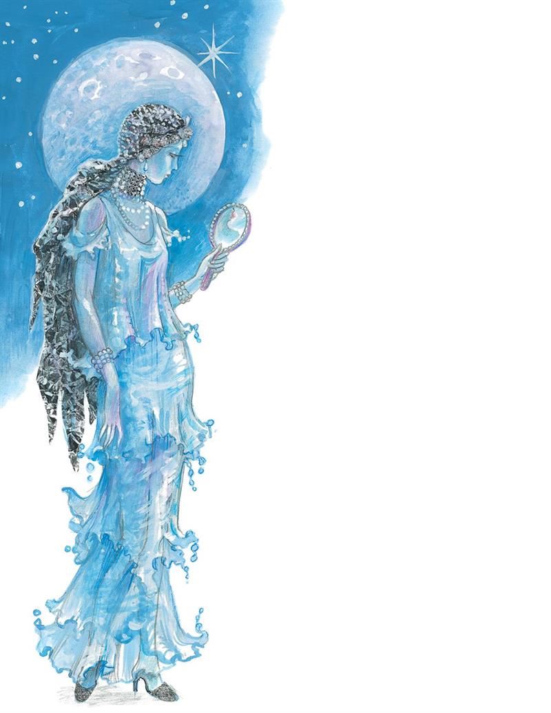 Зато младшая сестра, царевна Льдинка, совсем иная: разговорчива, словоохотлива и уж так хороша, что при виде её у самого грозного царя Холода очи загораются нежностью, седые брови расправляются и по лицу добрая, ласковая улыбка скользит. Любуется царь дочкой, любит её и так балует, что старшие царевны обижаются и сердятся за это на царя.