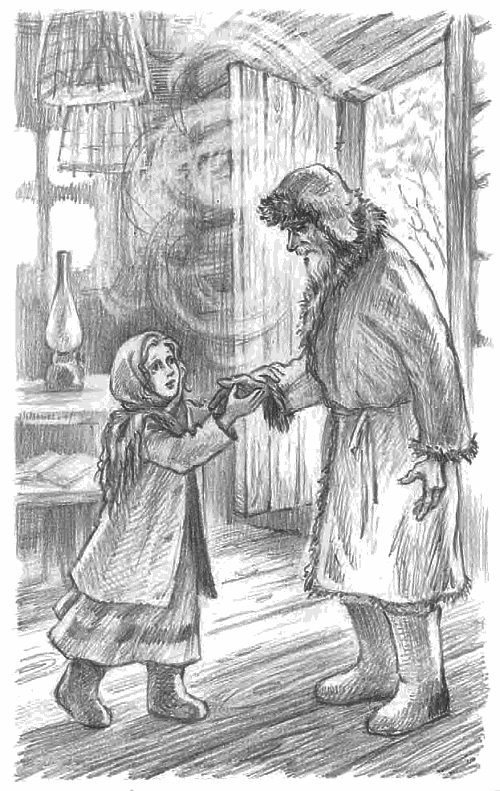 – Ничего, дедушка! Ничего, миленький! Я валенки надену и платок большой! – молила старика девочка.