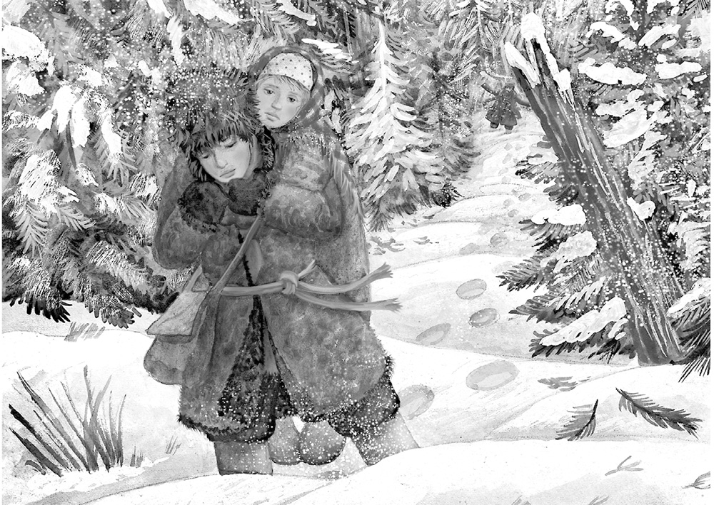 – Вот мешок с шишками, – произнёс он, протягивая девочке плотно увязанный узел. – Помни, что каждые десять шагов ты будешь сажать по одной шишке в снег. А теперь – раз, два, три! Сейчас я покончу с окошком.