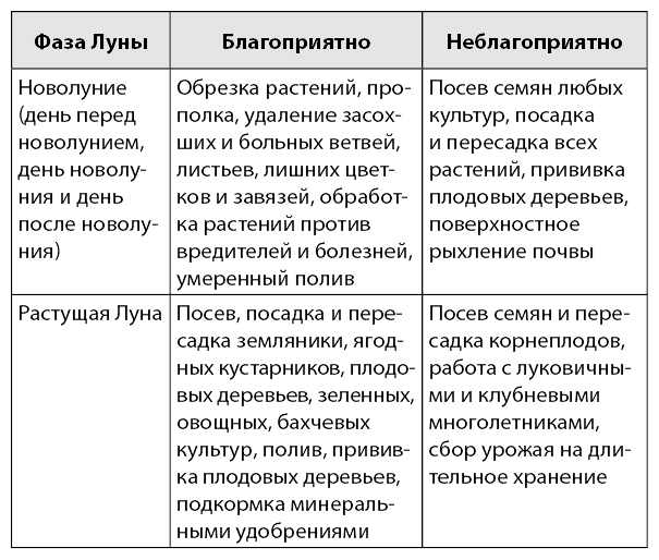В дни полнолуния и новолуния лучше воздержаться от посадки и пересадки растений, так как они очень чувствительны к любому вмешательству.