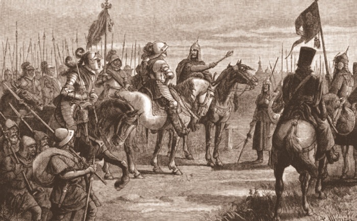 Отряд шведского воеводы Делагарди близ Новгорода в 1609 году. Гравюра Шюблера с рисунка Р. Штейна, 1896 г.