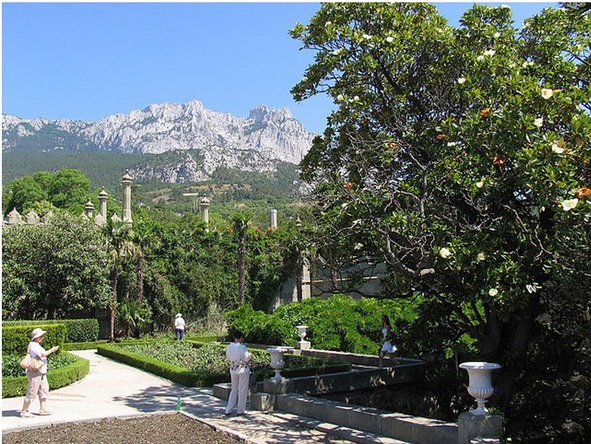 Алупка. Парк у Воронцовского дворца. Вид на Ай-Петри