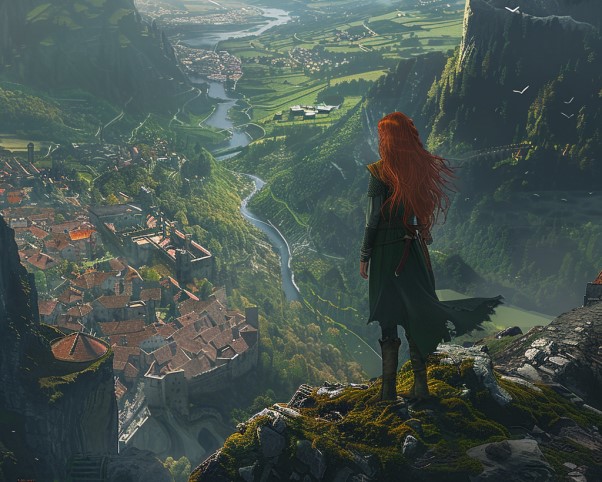 Внизу простиралось поселение эльфов, спрятанное горами со всех сторон от любых погодных угроз: ветров и ураганов. Небольшая торговая площадь угадывалась своими палатками по центру с двумя витиеватыми каменными фонтанами с ангелами по краям.