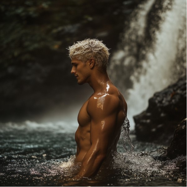 Молодой человек был полностью обнажен и неспешно углублялся в воду, давая окружающим себя рассмотреть во всей красе, нисколько не смущаясь чужих взглядов. Досконально разглядеть! Каждую частичку своего прекрасного тела! Его погружение в воду было настолько эффектным, что даже рот приоткрылся от восхищения.