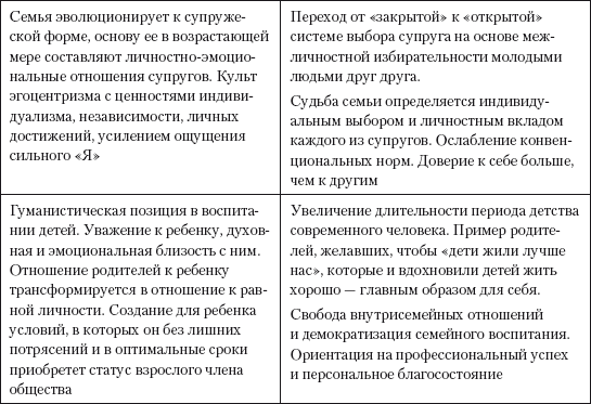 Таблица 2.1. Трансформация брачно-семейных отношений[25]