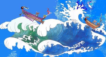 Проснулись горцы. Увидели они чужаков, всполошились. Женщины и дети спрятались в пещеры, а мужчины приготовились к битве. Стали они сталкивать в воду большие-пребольшие камни. Взбунтовалось море, заштормило, поднялись волны. Такие огромные, что солёные брызги достигли небес и вызвали грозу. Всю ночь стоял над морем ужасный грохот. В страхе повернули греки свои триеры обратно. Только мало кто из них добрался до своего берега. Тогда и назвали чужестранцы Чёрное море Понт Аксинский, что значит Негостеприимное море.