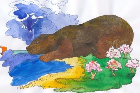 Но люди не испугались. Пастухи укрыли свои стада, а рыбаки спрятали лодки. Прошла гроза, выглянуло солнышко – и море успокоилось. Люди опять стали работать, как и прежде. Ещё сильнее разгневался дух старого колдуна. Приказал он Великому Медведю, жившему на севере, плыть в южную страну и наказать непослушных людей.