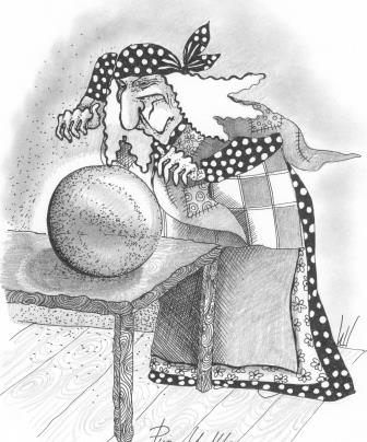 Старуха поймала летающий стеклянный шар и стала внимательно вглядываться в него.