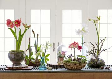 Хотя цветы амариллиса обладают броской яркой красотой и изяществом, флористы оформляют им мужские букеты, где они могут царить одни или в сочетании с другими растениями.