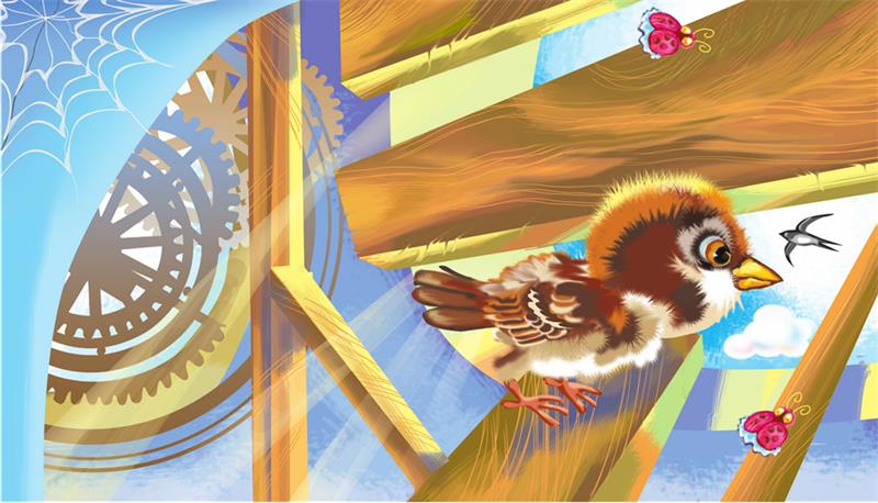 – Я вон в ту щёлку юркнул! – чирикнул воробышек и махнул крылышком в сторону забитого планками круглого окошка.