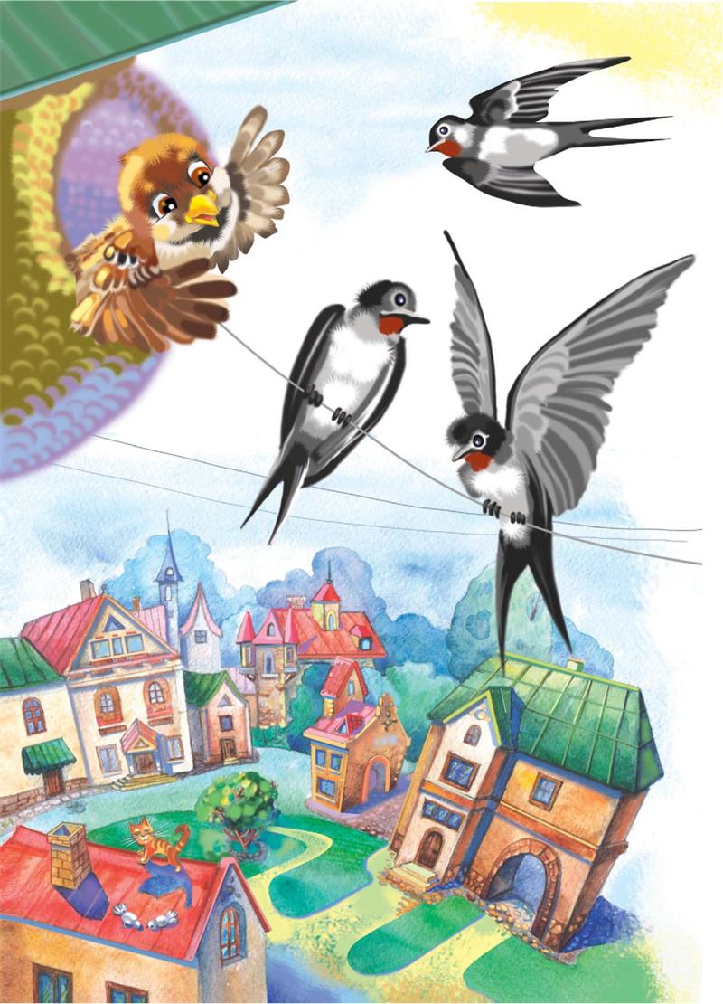 – Ну, положим, хвостик у него есть, только воробьиный, – сказал рассудительный папа- ласточка. – Ты как сюда попал, малыш?
