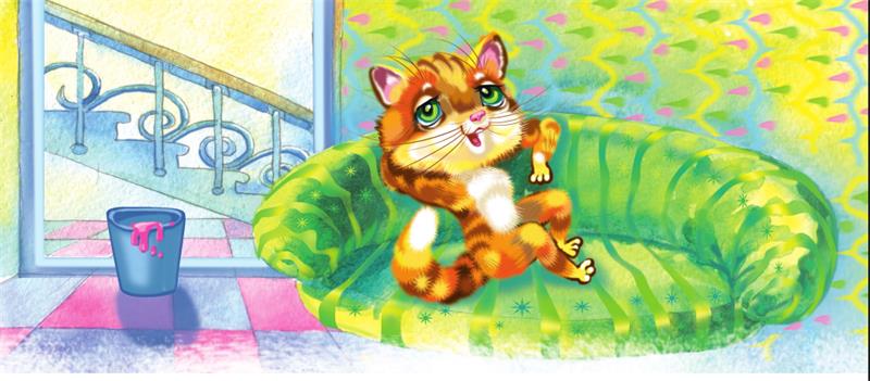 Увидев открытую дверь, Васька тут же в неё шмыгнула. Забравшись внутрь, она решила обойти помещение. Помещение ей не понравилось – оно было ободранным и гулким, хотя кошка старалась сильно не топать. Забравшись на второй этаж, Васька отыскала уже отремонтированный кабинет заведующего и устроилась на новом диване. Тут её и обнаружили рабочие, но выгонять не стали, а, наоборот, дали кусочек колбасы и потрепали за рыжим ухом. А на следующий день Васька сама нашла комнату, где они обедали на газетке, и тоже неплохо перекусила.