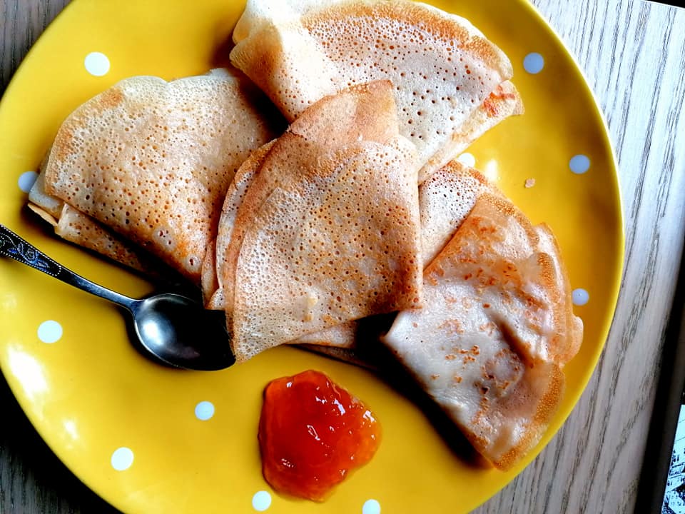 Сегодня по стандартам советской столовой у нас было первое, второе, третье, шестое и десятое. Суп из чечевицы, котлеты, гарнир к ним – булгур, салат, фахитас, оставшиеся со вчерашнего обеда, гречка, приготовленная на завтрак, и борщ – привет из марта. Еще нижеупомянутые блины. Мой холодильник – подлинный космополит.