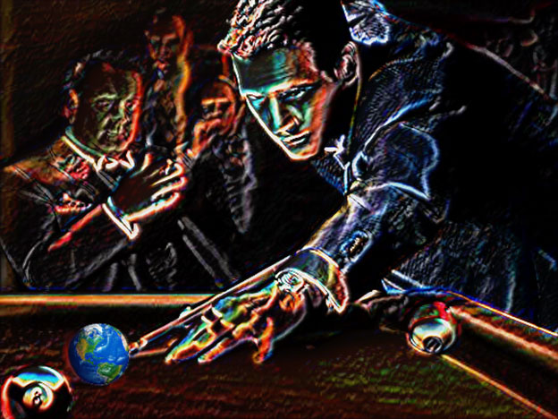 А кто там сверху? Вероятно, святое семейство в сумрачной комнате со стрельчатыми окнами. Высокие, стройные, в белых одеждах, они почти без слов склонились над огромной картой и вносят изменения с помощью стрелок, кружочков, флажков. Или развеселая компания собралась под пузырек с немыслимым для нас количеством градусов раскинуть мегапасьянс, расписать партейку, другую в галактический покер. Возможно, сборище трясущихся от алчности торговцев делит барыши и подсчитывает дивиденды. Но, скорее всего, на самом верхнем уровне – расшалившийся малыш, тайком пробравшийся в кабинет отца. Несмотря на запрет, смело нажимает он на кнопки и дёргает за мышку, заливаясь смехом, наблюдает за броуновским движением бесчисленных крошечных фигурок, за непрерывно мелькающими разноцветными картинками.