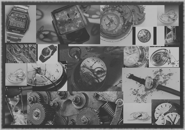 Песок застыл в колбе, превратившись в наивную инсталляцию бесконечности. Капли замерли на стекле, не успев пожертвовать собой ради головокружительного скольжения вниз. Тень перешла в разряд отпечатков и утратила былую подвижность. Огонь обрел новое агрегатное состояние где-то между смолой и золой. Маятник прекратил обряд фанатичного служения и стал бесполезным довеском системы. Колеса и шестеренки замерли на полпути к будущему, так и не узнав, насколько оно светлое. А стрелки, перестав бегать по кругу, слились с циферблатом, обернувшись псевдоруническим полуорнаментом.
