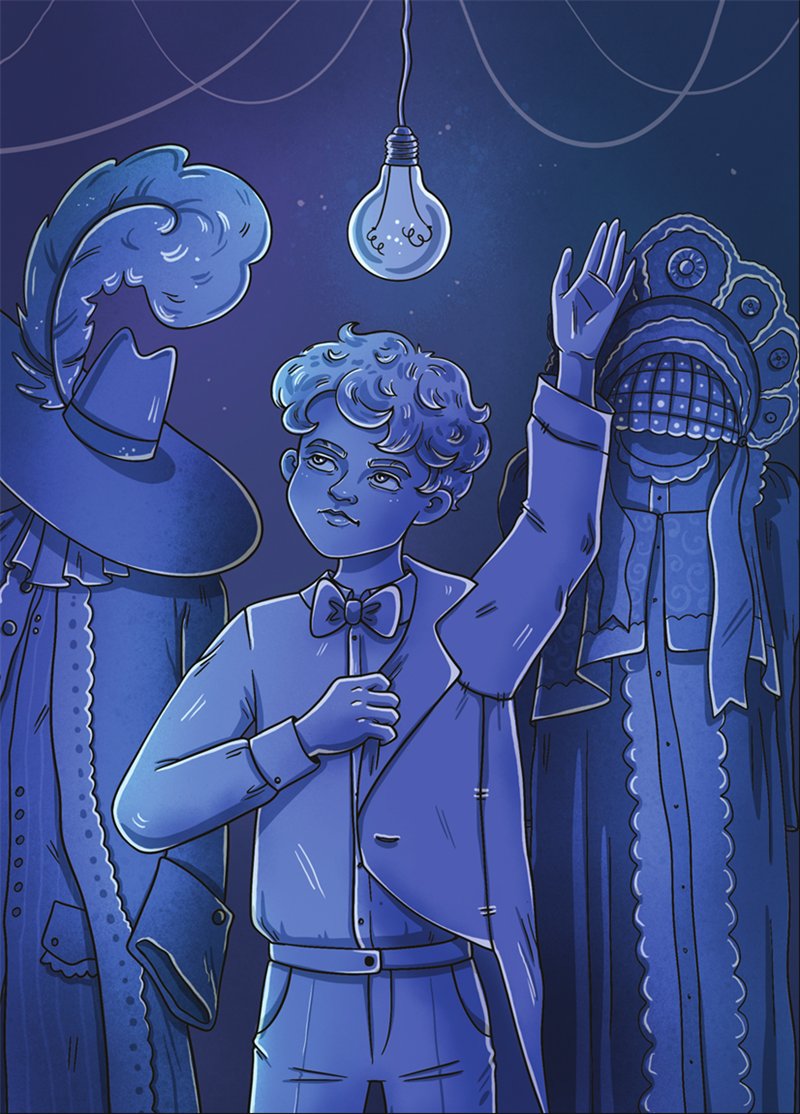 Вдруг Борис опустил взгляд и увидел, что белый фрак, без которого главная роль становилась даже не второстепенной, а вообще теряла своё истинное значение, был чёрный, словно ночь на экваторе. Даже меловая доска в классе была светлее, чем его костюм! Да, теперь Ольга Николаевна точно запомнит имя Берёзкина! Теперь она его ни с кем не пере путает!