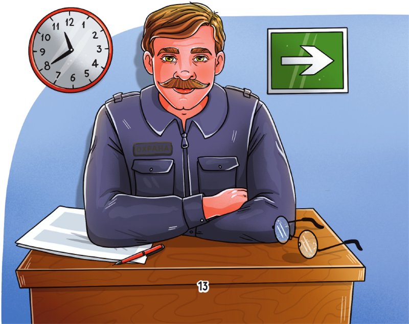 Борька большую часть пути двигался в общем потоке, но у самого входа в столовую свернул влево. Через коридор, мимо больших зеркал, расписанных гуашью, он шёл к охраннику Егору Денисовичу.