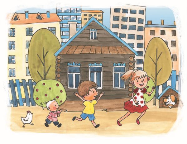 На краю города есть целая улица таких домов. Настоящая деревня прямо в городе! По улице ходят курицы и утки. За ними гоняются разноцветные коты. За заборами растут огурцы и лают собаки. Очень красиво и необычно!